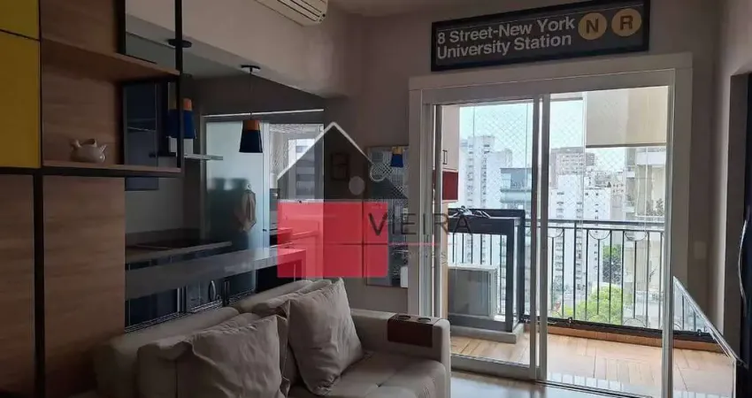 Trata-se de um amplo apartamento mobiliado , com 48m², composto por 1 dormitório, sala, cozinha americana, varanda e 1 vaga de garagem. O imóvel alia sofisticação, conforto e praticidade, ideal tanto para quem busca qualidade de vida