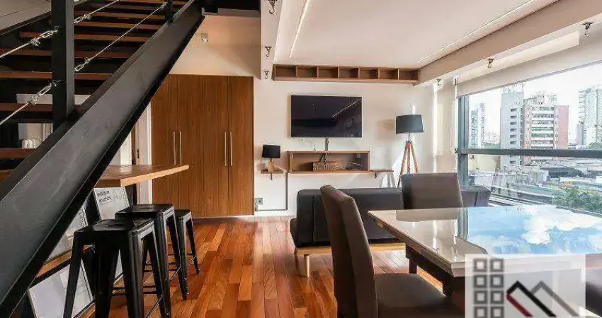 LOCAÇÃO - APARTAMENTO DUPLEX 1 DORM (64m²), 1 SUÍTE, MOBILIADO, TERRAÇO, 1 VAGA. AO LADO DO SHOPPING VILA OLÍMPIA