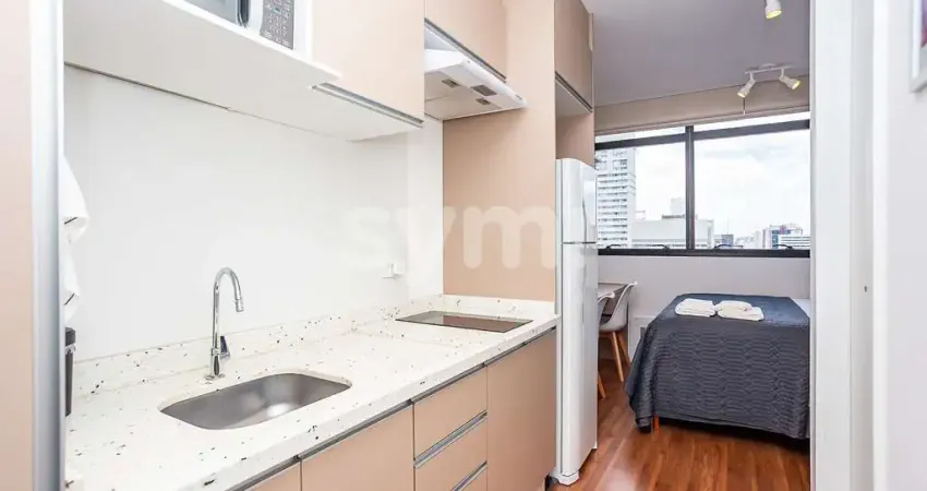 Studio moderno no Centro, estrategicamente localizado em condomínio clube completo, finamente mobiliado e decorado. A poucos passos de shopping, supermercados, transporte público e de toda a infraestrutura que a região oferece ? praticidade total no dia a dia.