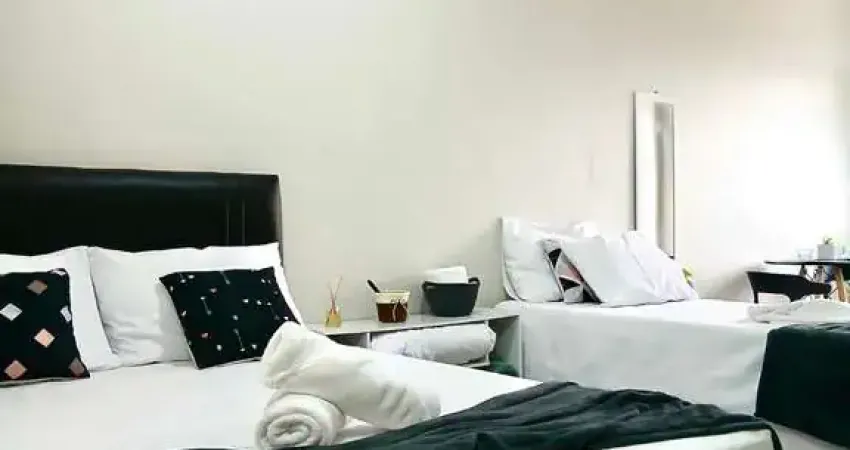 Loft 3 - Unidade 102 - Capacidade 4 pessoas - 1 quarto conjugado com cozinha, 1 banheiro com 1 cama de casal, 1 cama de solteiro dupla, ar condicionado, ventilador de pé, microondas, tv, fogão 2 bocas, cafeteira, lugar para colocar roupa, frigobar e Wi-Fi.