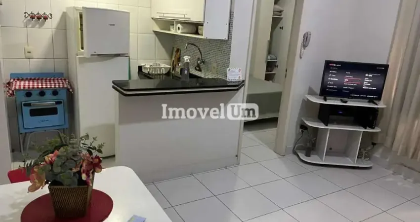 Ótimo apartamento 40m² , MOBILIADO, SILENCIOSO, CLARO E AREJADO, composto por 1 quarto suíte, armários, banheiro com armário e blindex, sala, cozinha americana, totalmente climatizado, piso frio, janela na sala e no quarto.