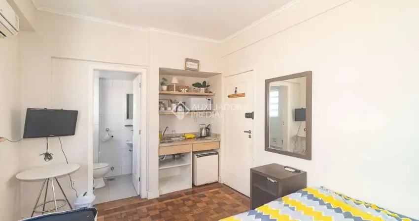 Apartamento JK localizado na Rua General Andrade Neves, no tradicional e charmoso bairro Centro Histórico de Porto Alegre, ideal para quem busca praticidade. A poucos passos da Praça da Alfândega, o imóvel está cercado por restaurantes, confeitarias, comércios, Farmácia Panvel, transporte público e uma ampla rede de serviços, garantindo total comodidade para o dia a dia. Conta ainda com fácil acesso às Avenidas Senador Salgado Filho e Borges de Medeiros, facilitando a mobilidade para diferentes regiões da capital. Com 17m de área privativa muito bem aproveitados, o apartamento apresenta um ambiente funcional e aconchegante, com living/dormitório equipado com cama de casal, mesa, bidê e ar-condicionado split, proporcionando conforto em um espaço prático. A cozinha é eficiente, com pia, balcão, frigobar e micro-ondas, atendendo perfeitamente às necessidades do cotidiano. O banheiro social possui box de vidro, complementando o imóvel com um toque de modernidade. A orientação solar Sul contribui para um ambiente mais ameno e agradável.