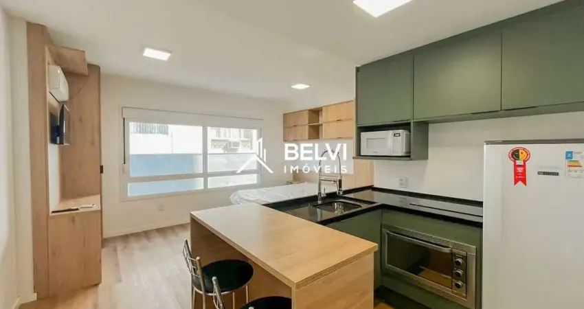 Loft com 30m² privativos no condomínio Quintal Moinhos, totalmente mobiliado, nunca habitado e em estado impecável.