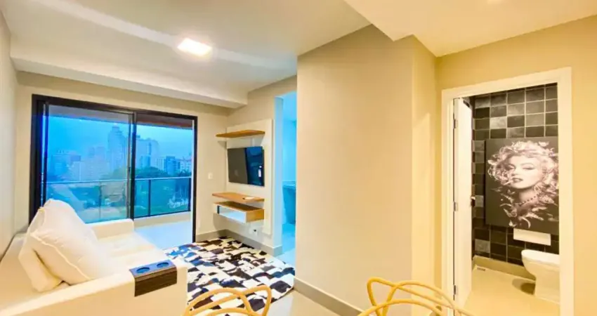 Apartamento novo, com 1 dormitório, 1 suíte e lavabo, foi acrescentado todo fechamento de vidro na varanda, e cama com cabeceira, acabamento impecável.
