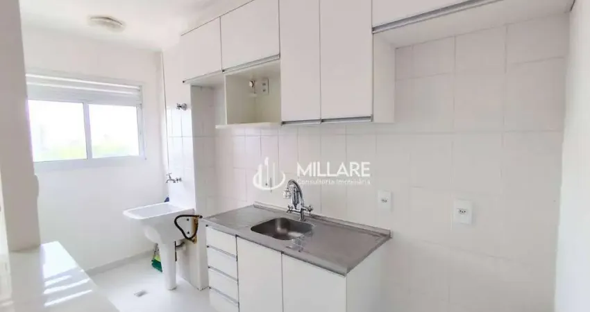 Imóvel aconchegante para alugar com 1 quarto e 1 banheiro no total, apartamento novo, com cozinha americana, A.S, banheiro com box de vidro, armário, ventilação natural e armários planejados na cozinha.