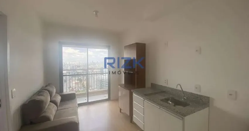 Stúdio novo na Liberdade, sala com varanda, andar alto com ótima vista, dormitório com armário, sala com sofá, piso laminado.