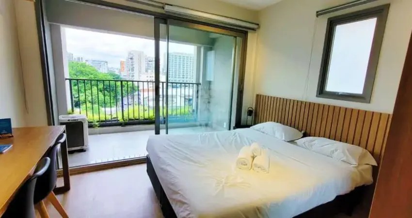 Studio mobiliado e decorado com sacada | 30m² | Pronto para morar!