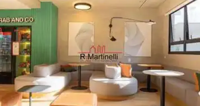 Studio em Pinheitos com 25 metros, muito bem distribuído, contemporâneo, equipado, com excelente localização.
