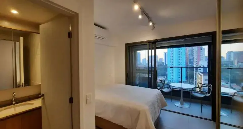 Studio totalmente mobiliado com bom gosto e sofisticação, marcenaria de qualidade, ar condicionado com acesso remoto, cama de casal baú box e colchão super confortável, mesa para refeições e estudos , cooktop, micro-ondas, geladeira. Fechadura digital.