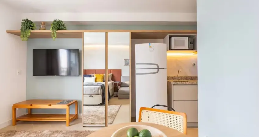 Com 26m² bem aproveitados, o apartamento conta com 1 quarto, ambiente funcional e bem iluminado, além de varanda, que proporciona ventilação natural e um espaço agradável para relaxar no dia a dia.