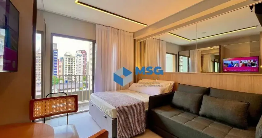 Studio moderno de 24m², totalmente mobiliado, ideal para quem busca praticidade e conforto em uma das localizações mais valorizadas de São Paulo. O ambiente integrado conta com 1 dormitório, 1 banheiro e varanda com vista livre, que garante iluminação natural e sensação de amplitude.