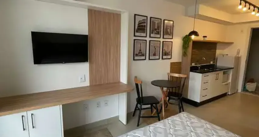 O studio é mobiliado e pronto para morar, com: