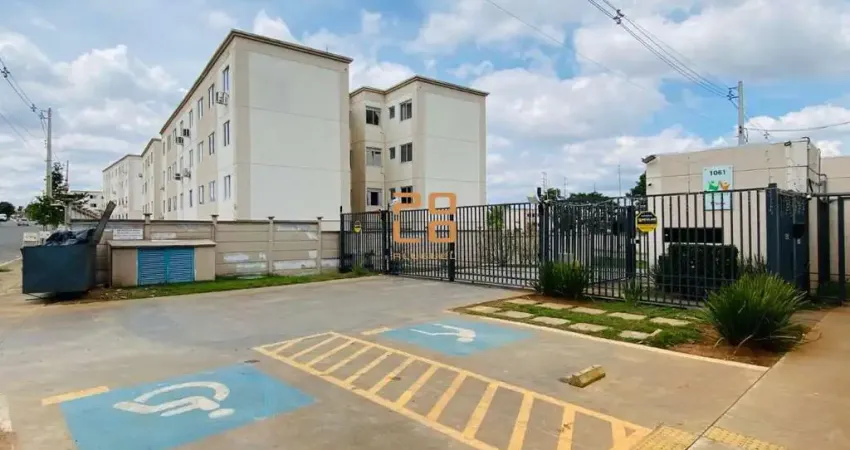 Apartamento para alugar no Edifício Residencial Morada Goiá II, Parque Oeste Industrial. Com 42m² de área, o imóvel conta com 2 quartos, banheiro social, sala, cozinha e área de serviço. Uma vaga de garagem descoberta. Área de lazer com área gourmet e playground.