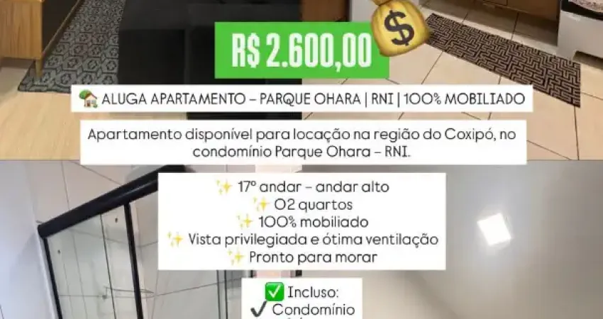 APARTAMENTO MOBILIADO NA REGIAO DO COXIPO PARQUE OHARA RNI ALUGO POR 2.600 INLCUSO TAXAS.