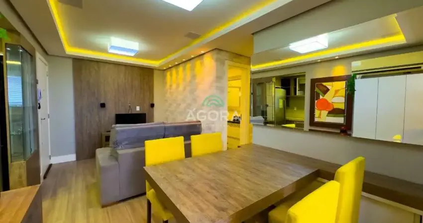Ágora Cia Imobiliária aluga: Apartamento mobiliado, com 02 dormitórios, sendo uma suíte, closet, sala de estar, rebaixo em gesso com luz de led na sala e quarto de casal, cozinha com cook top, geladeira, forno elétrico embutido, banheiro social, sacada fechada, área de serviço com máquina lava e seca, churrasqueira e vaga para dois carros. Piso vinílico, dois splits e aquecimento à gás.