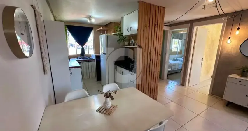 O imóvel conta com 2 dormitórios, sala de estar e jantar integradas, cozinha e banheiro, oferecendo ambientes funcionais, bem distribuídos e confortáveis.