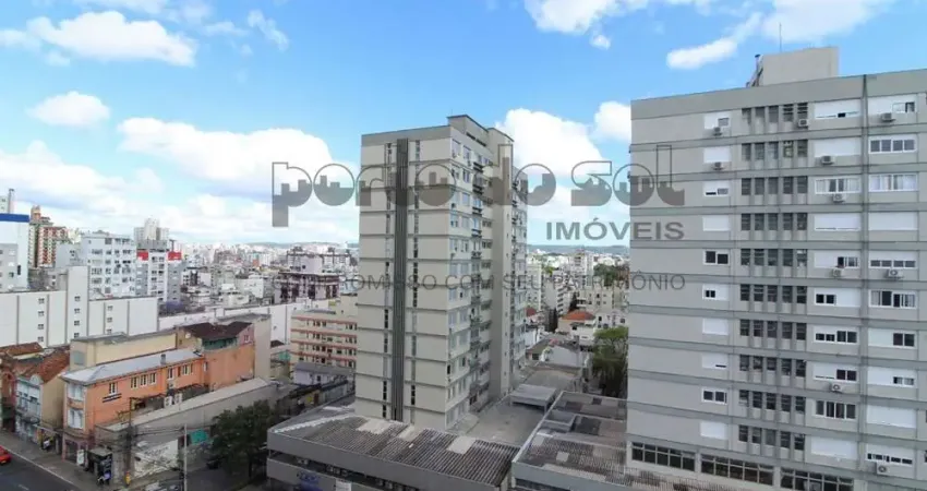 Porto do Sol Imóveis ALUGA excelente apartamento de 02 dormitórios em Avenida conceituada no Bairro Independência, dormitórios espaçosos, um deles com ar condicionado, 84 m2 de área privativa, todo reformado, de frente, 10° andar, com vista esplendida para a cidade, posição solar e ventilação privilegiada, living amplo com ventilador de teto, piso laminado, sacada fechada, cozinha com pia, balcão e armários, área de serviço fechada com tanque e aquecedor, quarto e banheiro auxiliar, banheiro social com box de vidro, pia e balcão.