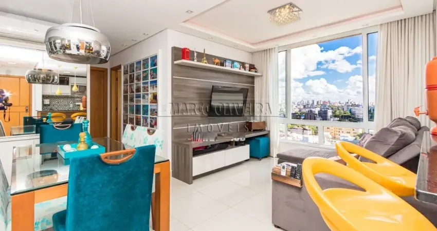 Excelente apartamento de 2 dormitórios, suíte, totalmente mobiliado, no 15° andar, vista indevassável, apartamento super iluminado e ensolarado, living para dois ambientes, cozinha americana com churrasqueira, garagem para dois carros, prédio com portaria virtual, academia, brinquedoteca, dois elevadores, torre única, salão de festas e piscina na cobertura do prédio com vista deslumbrante.