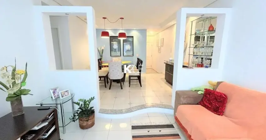 Apartamento de 2 dormitórios, 1 banheiro social, sala ampla para dois ambientes, cozinha com móveis embutidos e área de serviço, vista mar da sacada.