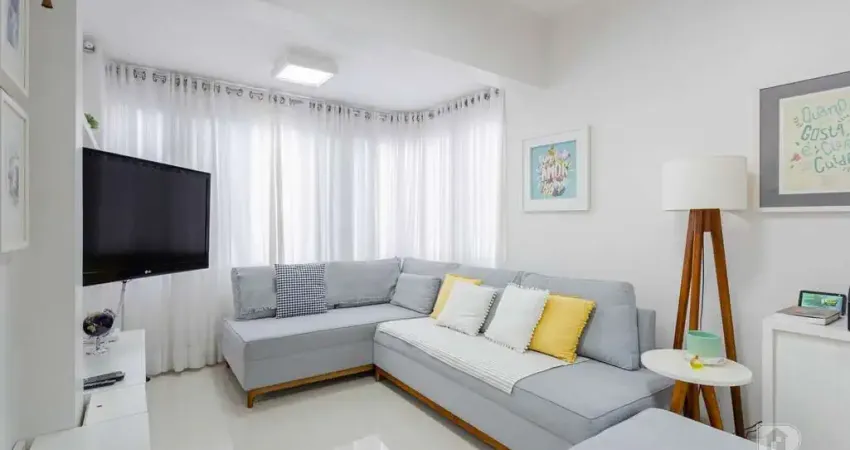 Apartamento semi-mobiliado com 2 quartos, 1 banheiro, sala e cozinha integradas e sacada integrada. Muito silencioso, pega sol da manhã (não é quente no verão) e possui porcelanato em todo o imóvel.