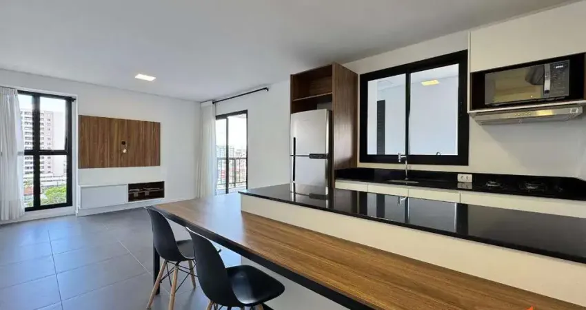 Apartamento sem mobiliado com acabamento de alto padrão com 02 dormitórios, sendo uma suíte. Em andar alto com bela vista da cidade. Oferece sala de jantar conjugada com a de estar, cozinha no conceito de espaço aberto com móveis planejados e eletros, e ar condicionado em todos os cômodos. Ainda, os quartos possuem armários planejados, e sistema de persianas. Conta com 01 banheiro social, com sacada com churrasqueira a carvão, e 01 vaga de garagem coberta e sacada técnica. Tudo isso distribuído em um ambiente novo e moderno.