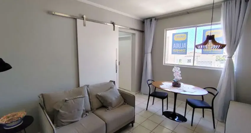 SOBRE O IMÓVEL: Aconchegante apartamento mobiliado (exceto máquina de lavar)! 47,39,00 m², 2 quartos (sendo um com ar condicionado), sala, cozinha e área de serviço conjugadas, banheiro e estacionamento interno rotativo.