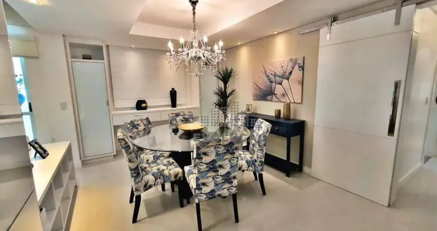 Apartamento de alto padrão mobiliado, com duas suítes, uma máster com banheira de hidromassagem, closet e sacada. Sala para dois ambientes com sacada com churrasqueira a carvão, cozinha no conceito aberto, lavabo, 3 ar condicionado, área de serviços, 1 vaga de garagem coberta e livre, condomínio com salão de festas, playground e academia.