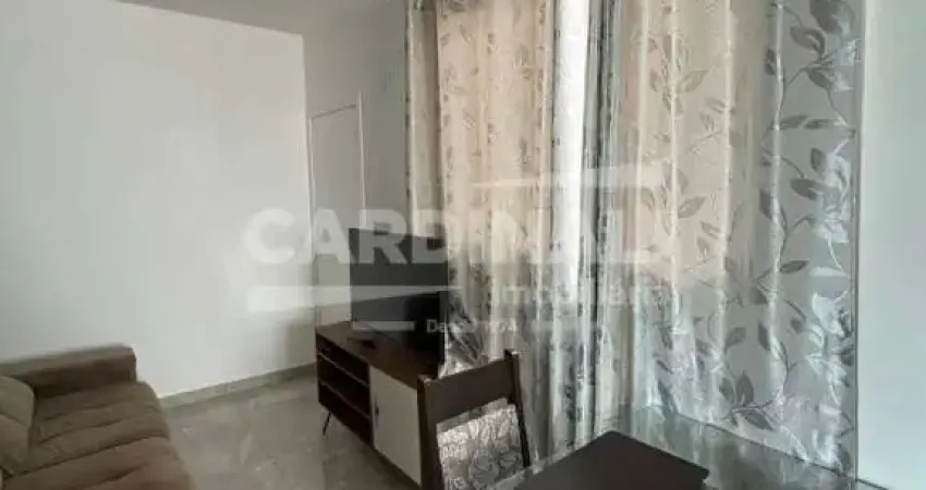 Excelente Apartamento Residencial Padrão com 02 dormitórios com guarda-roupa, sala com sofá retrátil, rack e mesa com 4 cadeiras. Cozinha com armário planejado, fogão, geladeira, máquina de lavar e varal de parede. Escritório com escrivaninha e cadeira, banheiro com box de vidro, 01 vaga coberta de garagem e piso frio/cerâmica.
