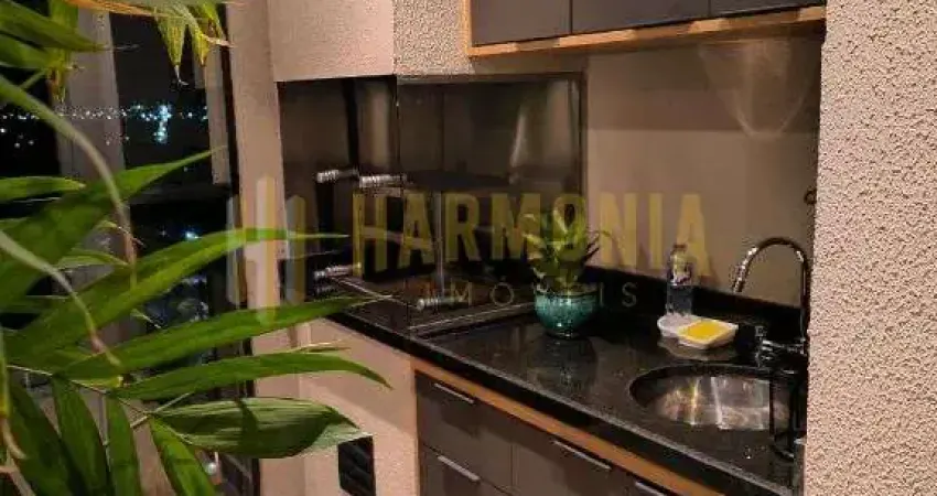 Varanda gourmet com churrasqueira e pia,