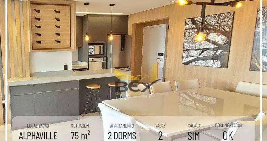 Apartamento com 2 dormitórios com suíte e sala estendida total mobiliado para locação de 75 m² em alphaville Barueri SP