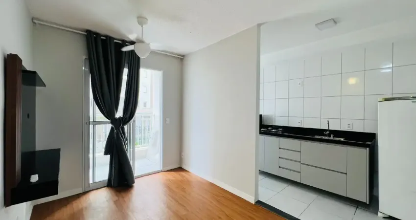 O apartamento conta com living para 2 ambientes, sacada, cozinha com área de serviço, 2 quartos e 1 banheiro social.