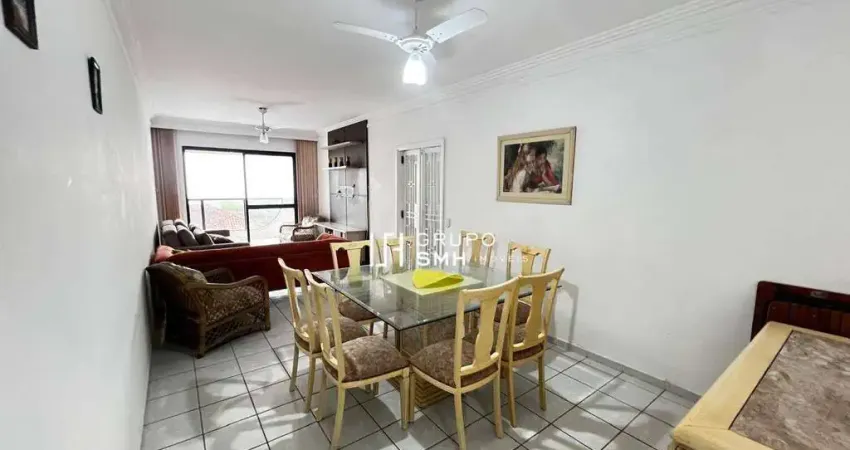 Apartamento de 110m² de área útil, mobiliado, sala para 2 ambientes, sacada, cozinha, área de serviço com dependências de empregada, 2 dormitórios sendo 1 suíte, 1 banheiro social, ar condicionado e 2 vagas de garagem.