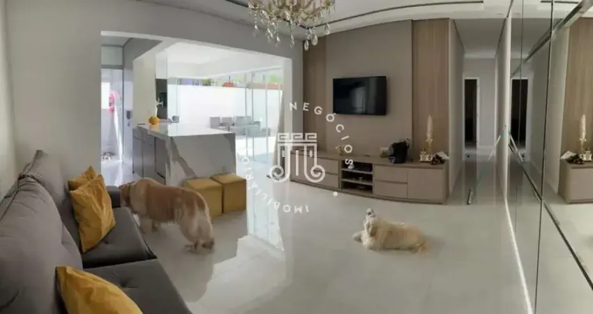 O imóvel está composto por 2 dormitórios sendo 1 suíte, banheiro social com box de vidro, sala para dois ambientes com amplo quintal e espaço gourmet com churrasqueira, cozinha com armários planejados, área de serviço e 1 vaga de garagem coberta.