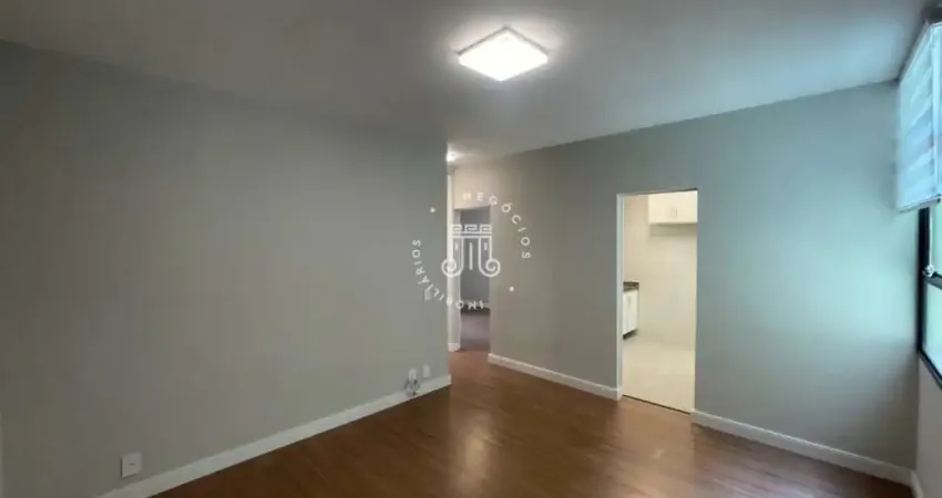 O apartamento é composto por uma sala espaçosa e iluminada, com boa entrada de luz natural, uma cozinha planejada com armários sob medida e integrada à área de serviço, dois quartos de bom tamanho e um banheiro com box de vidro, pia separada e detalhes em revestimento 3D.