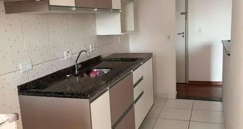 Apartamento com 2 quartos, cozinha com armários planejados, sala ampla com varanda, 1 banheiro e 1 vaga de garagem fixa e coberta.