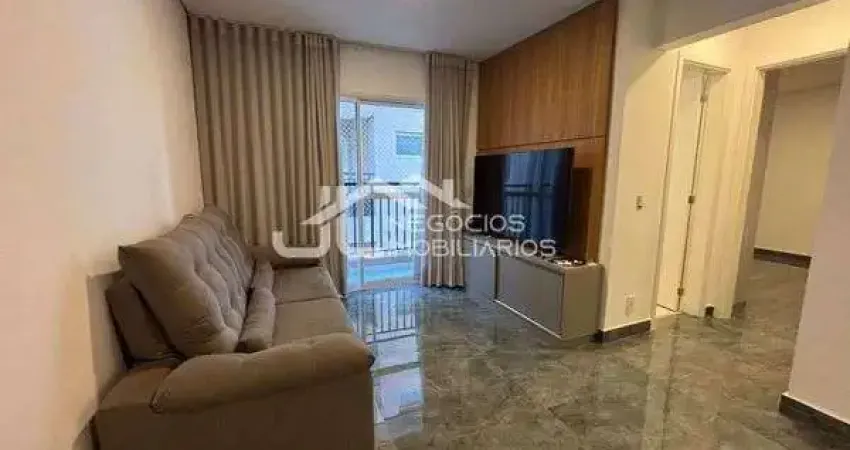 Apartamento com: 2 dormitórios (um com varanda), sala 2 ambientes com varanda, 1 banheiro social, 1 vaga de garagem.