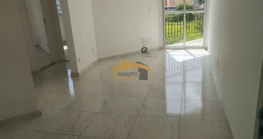 Apartamento para locação com 2 dormitórios, sala para 2 ambientes com sacada, cozinha com armários, banheiro social com box de vidro, área de serviço e 1 vaga de garagem coberta.