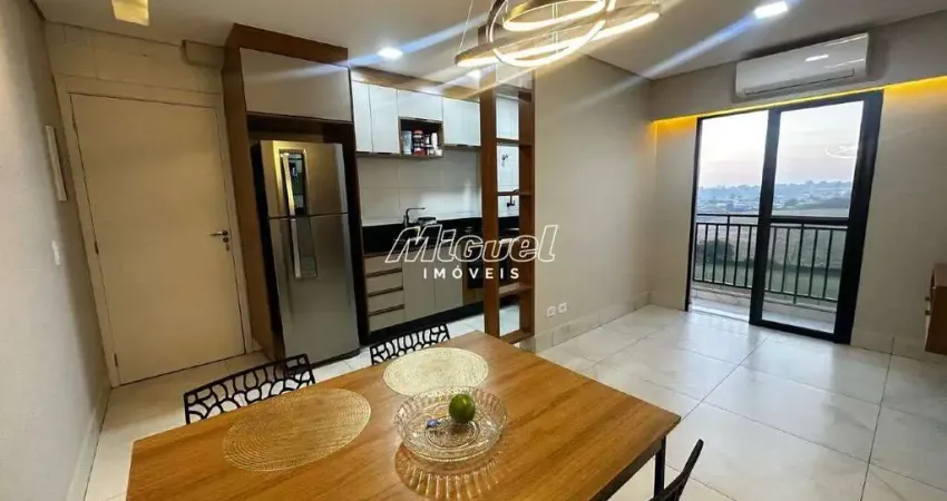 Ref.: 37542 - Apartamento - Área Útil: 65,00 m² - com 02 dormitórios sendo 01 com ar condicionado, cabeceira de cama com criados e painel de tv, outro dormitório com amplo guarda roupa com varias divisórias e sapateiras, sala com lindo lustre, ar condicionado inverter 12mil btus, espelhos que permitem amplitude, porta de separação de ambientes integrada com painel de tv, cortineiro e porta de correr em alumínio que da acesso a sacada, cozinha com bancada em mármore, cubas de alumínio, torneiras modernas com regulagem de pressão, cooktop, forno a gás e moveis planejados de alta qualidade (madeiras nas cores BETON e LOURO FREIJÓ), 01 banheiro com pia em mármore branco e box em aluminio preto até o teto e 01 vaga de garagem. Imobiliária Piracicaba