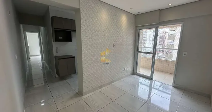Apartamento para locação no bairro Aviação em Praia Grande, SP. 2 dormitórios sendo 1 suíte, sala dois ambientes com sacada, cozinha planejada, área de serviço, banheiro social e uma vaga de garagem.