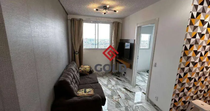 Apartamento de 38m² mobiliado, com dois dormitórios, sala dois ambientes, banheiro social, área de serviço e 1 vaga de garagem.