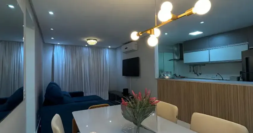 Apartamento com móveis planejados, todo mobiliado, decorado e com 3 máquinas de ar-condicionado. Sala 2 ambientes com vista praia, 2 dormitórios sendo 1 suíte, banheiro social, cozinha, área de serviço e uma vaga de garagem certa.