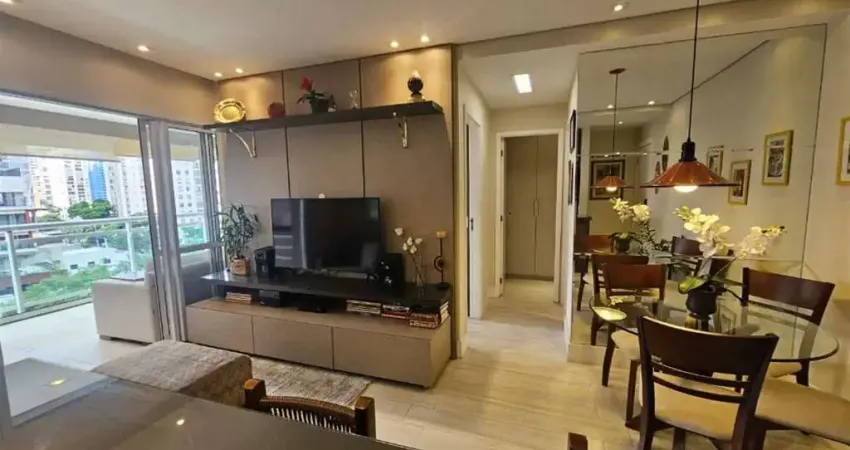 Belo apartamento no Brooklin MOBILIADO possuindo 72m de area util, com dois dormitorios sendo uma suíte, Varanda Gourmet, uma vaga de garagem, area de serviço, cozinha, sala com dois ambientes, ar condicionado e muito mais.