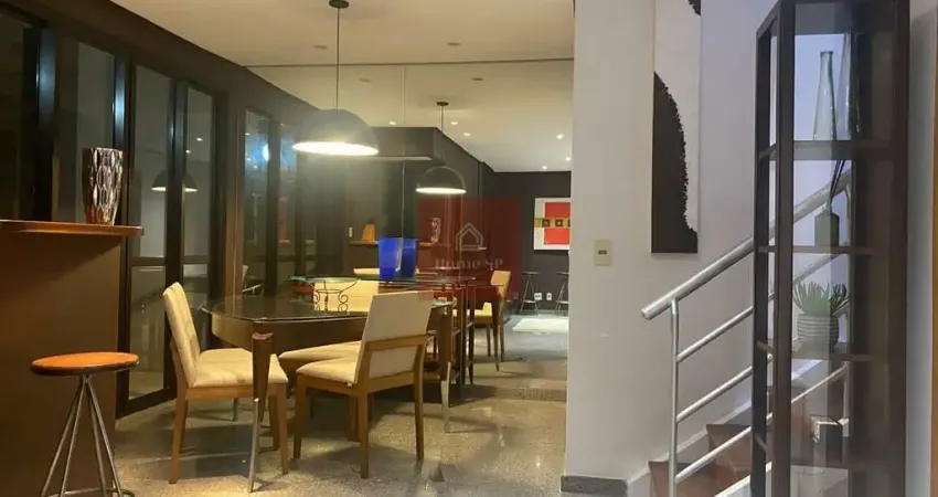 Este excelente duplex com duas suítes, varanda, área de serviço, 2 vagas de garagem, na Alameda dos Jurupis, localização estratégica em Moema, acesso a muitos serviços, metrô, ônibus, uma gama de restaurantes, variado comércio, parques. O condomínio oferece lazer completo, incluindo slas de reunião , ótima academia, piscina, sauna, hidromassagem, churrasqueira e mercadinho. O apartamento é ótimo, com sala em dois ambientes, com varanda, cozinha americana e lavabo no andar inferior, no andar superior, possui duas suites,