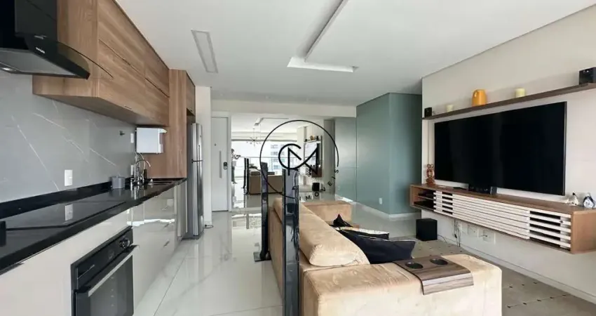 Apartamento incrível, ricamente mobiliado, com muito bom gosto, andar alto, sala ampliada com uma charmosa varanda integrada, toda em porcelanato polido, luminosidade impecável proporcionando uma amplitude única, bancada alongada, dois dormitórios com planejados belíssimos, sendo uma suíte repleta de muito conforto e dois banheiros com box de vidro e espelho grande. Cozinha estilo americana, ótima de armários, totalmente integrada ao ambiente social. O apartamento tem uma vaga livre.