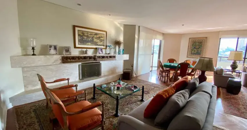 Maravilhoso apartamento com vista definitiva para o Vale do Pacaembú, reformado recentemente, inclusive instalações elétricas e hidráulicas. A unidade foi adaptada para 2 espaçosas suítes, ambas com Closet e Terraço, com possibilidade da ante sala da suíte master ser transformada numa 3ª suíte. Hall de entrada social privativo com acesso controlado por biometria. Amplo living permitindo até 3 ambientes distintos incluindo lareira, sala de jantar separada dos demais ambientes, sala de TV com Bar ligada a sala principal por porta balcão. Suítes e sala de TV com ar condicionado tipo Split, extenso e largo Terraço interligado a todas as salas, piso de madeira em todas as salas e carpete nas suítes. São 4 vagas determinadas. Condomínio com lazer completo, rua arborizada e excelente localização, perto de tudo com total infraestrutura de comércio e serviços. Agende uma visita e venha conhecer este apartamento encantador!!!