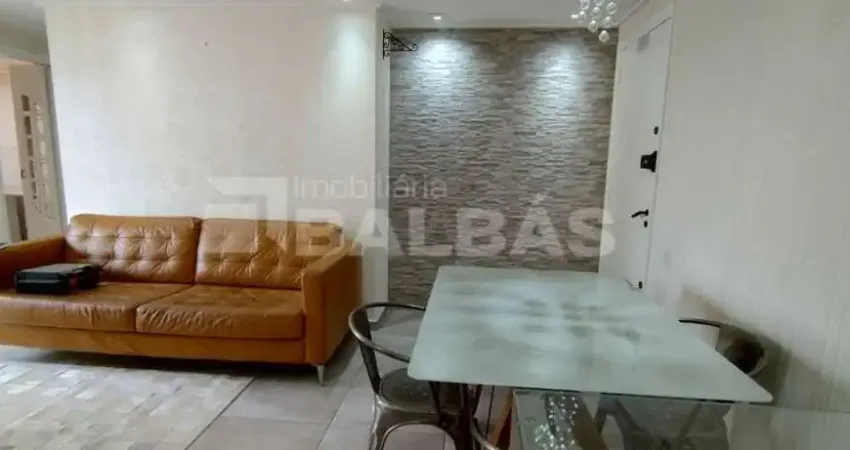 Apartamento de 64m² Mobiliado com uma vaga e andar alto, sala com sofá, mesa com 4 cadeiras. rack com painel, aparador e espelho, tapete e cortina, sacada, cozinha com planejados, geladeira Side By Side e fogão 5 bocas, área de serviço com planejados, máquina de lavar Brastemp 12kg e aquecedor, banheiro social com gabinete e nichos, ducha e box de vidro, dormitório com planejados e ventilador de teto, suíte com planejados, cama com colchão, ventilador de teto e banheiro com gabinete e nichos, ducha e box de vidro. Fechadura com senha.