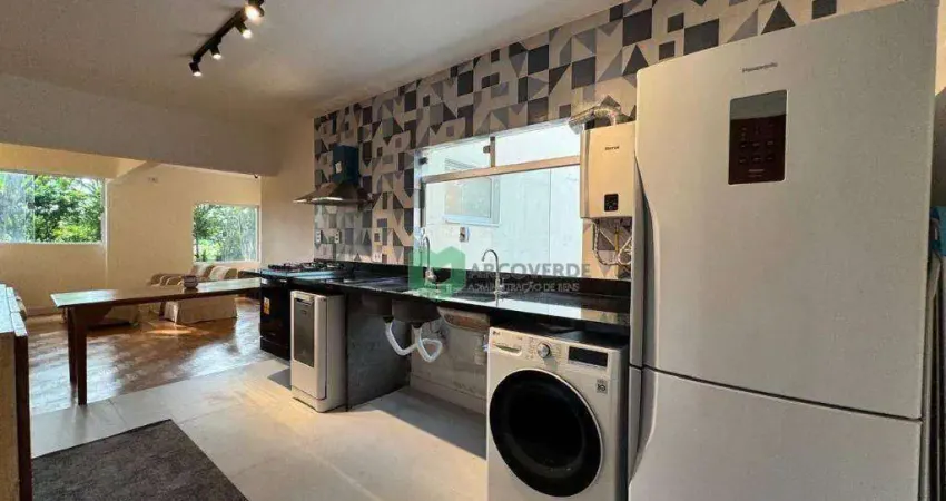 Semi-mobiliado, com linha branca completa (fogão, geladeira, maquina de lavar louça, maquina lava e seca)
