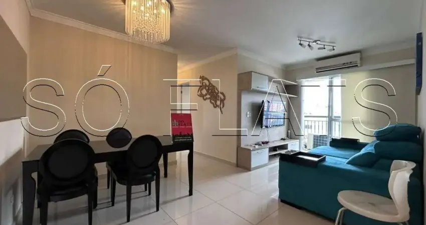 A unidade totalmente mobiliada, disponível para locação, possui 72 m², 02 dormitórios e 02 vagas de garagem.