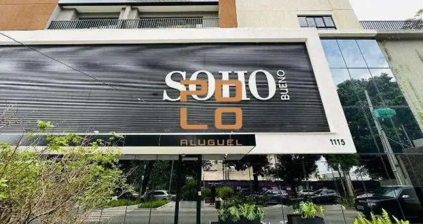 Apartamento mobiliado para alugar no Edifício Residencial Soho Bueno, localizado no Setor Bueno, com 70,85 m². Possui duas suítes plenas, ambas com cama e armários, lavabo, sala ampla em dois ambientes com mesa de jantar, sofá e televisão, varanda com balcão, cozinha americana repleta de armários, equipada com geladeira, fogão, exaustor e micro-ondas, além de área de serviço.