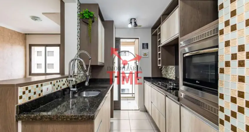 Sala de estar e de jantar conjugadas. A cozinha conta com móveis sob medida, cooktop, forno elétrico Fischer. Lavanderia. Sacada com churrasqueira a carvão e exaustor individual.